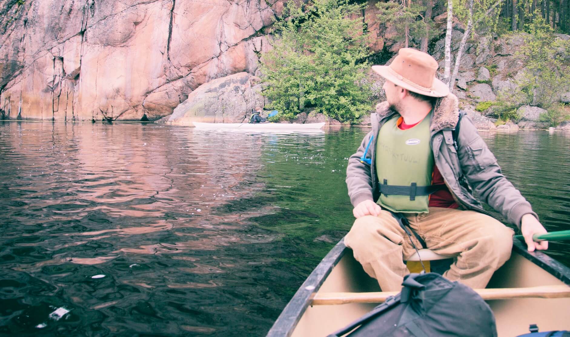 Haukkavuoren kalliot. The Sarkavesi lake is a great for canoeing, kayaking, supping and swimming. The water is clean and clear. Rent a canoe or a stand-up paddleboard and go on a trip!